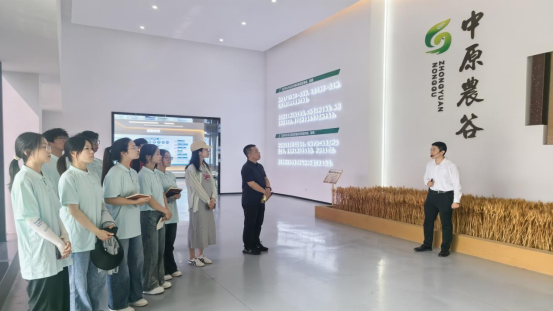 6月27日,实践团成员前往中原农谷开展参观学习。讲解员对其“空间布局、机制运作、发展理念、原创性成果”等进行了详细讲解,并带领实践团成员参观了现代农业科技展馆内的步步高升管道式水培、支撑架欧荷栽培、A字架基质培等二十余种无土栽培技术。尽管现代种植技术展现出创新潜力,但土壤种植仍占主流的现状,让实践团成员们深刻认识到黄河流域生态环境修复的紧迫性。