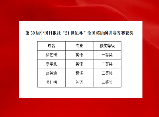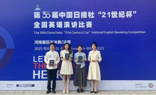 6月8日,第30届“21世纪杯”全国英语演讲比赛省赛在郑州商学院圆满落幕。经过激烈角逐,我校外国语学院学子再创佳绩。徐艺臻同学凭借优异表现荣获省赛一等奖,成功晋级全国总决赛;李华北同学荣获省赛二等奖,赵笑迪、吴佳明两位同学分获省赛三等奖。这一成绩刷新了我校近三年在该赛事中的最佳纪录,充分彰显了外国语学院学子扎实的专业功底与卓越的综合素养。华亿在线体育因在赛事组织工作中的突出表现,被授予“优秀组织奖”。这一荣誉不仅体现了我校在大型学科竞赛组织方面的专业能力,更充分展示了学校在创新型人才培养方面的综合实力。