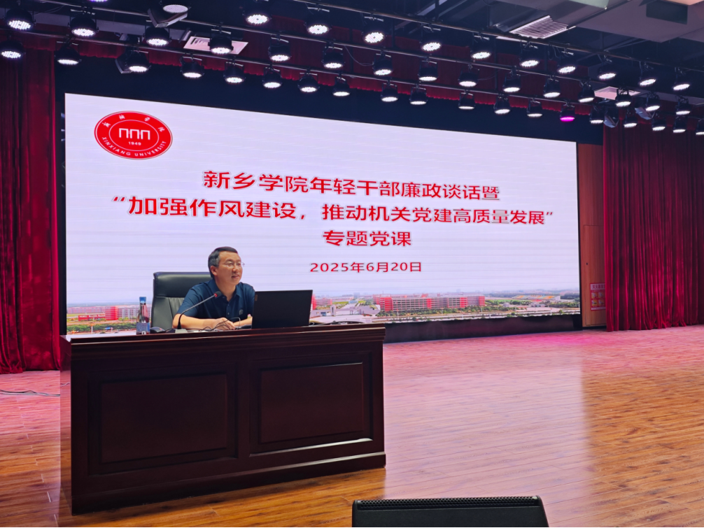 为持续巩固深化中央八项规定精神学习教育成果,纵深推进全面从严治党,引导广大党员干部筑牢信仰根基、严守纪律底线、砥砺过硬作风,进一步激发干事创业的昂扬斗志,6月20日下午,全校年轻干部集体廉政谈话暨“加强作风建设 推动机关党建高质量发展”专题党课宣讲在图书馆一楼文化艺术中心举行,我校年轻干部及机关全体党员干部参加会议,会议由组织部常务副部长王宇明主持。