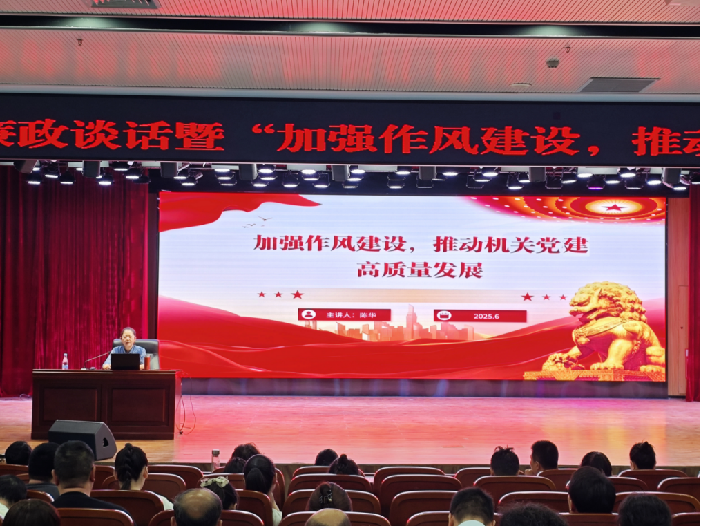 机关党委书记陈华以“加强作风建设,推动机关党建高质量发展”为题讲授专题党课。党课围绕“作风建设的重要意义和内涵”“当前高校机关党建作风建设中存在的问题”以及“作风建设推动高校机关党建高质量发展的具体措施”等,从理论高度深刻阐释了作风建设的基础性、关键性作用,指出了机关当前在作风建设方面存在的短板和不足,并提出了系统性强、操作性实的改进措施。陈华强调,机关党委各部门作为学校的管理中枢,其作风是全校的风向标,全体党员干部要带好头、作表率,提高政治站位,加强机关作风建设,为学校各项工作提供坚实组织保障。