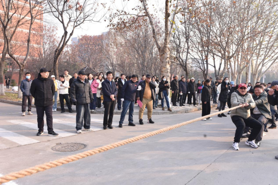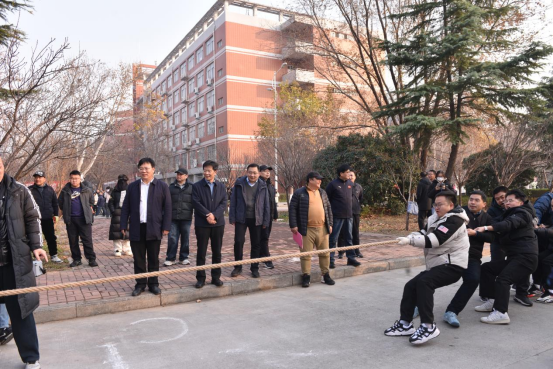 12月16日下午,由校工会、校体委主办,体育学院承办的华亿在线体育2025年教职工拔河比赛在学校博雅广场北侧汇文北路举行。比赛吸引了全校30支基层分工会代表队积极参与,比赛氛围紧张热烈,校领导李广慧、宋伟、杨钧、赵伟杰、高雪霞参加活动为教职工加油助威。