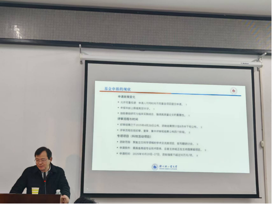 讲座中,吴怀广围绕基金项目申报的核心环节展开分享。首先,他强调了科研项目产出的策略,建议教师在论文期刊选择上优先考虑CCF A类顶会或IEEE/ACM顶级期刊,避免预警期刊,以提升基金评审得分;同时,他指出发明专利虽周期长但价值高,可结合实用新型专利补充成果数量。其次,在科研团队建设方面,吴怀广提倡形成“教授-副教授-博士-硕士”的梯队结构,并依托省级实验室等平台的开放课题,加强与企业的深度合作,积极申报“领军人才”或“创新团队”项目,以项目驱动团队成长。最后,针对基金申报,吴怀广分析了当前面上项目和青年项目竞争加剧、资助率下滑的现状,并分享了撰写技巧:注重表述清楚“为什么做、做什么、怎么做”的逻辑框架;文献综述应引用近三年国际前沿成果;研究问题需聚焦1-3个核心点;技术路线图宜简洁明了,避免与已有成果脱节。在讲座之后,吴怀广现场对部分教师申报的项目进行了耐心的点评和指导。