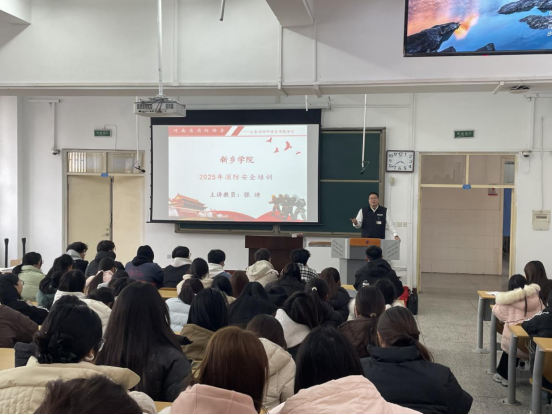 随后,在A11-119教室,张迪老师为2025级200余名在校生开展专场消防安全知识培训。他结合火灾案例视频,系统讲解火灾成因、报警流程及火场自救等基础消防知识,重点强调校园宿舍、教学楼等区域的消防安全禁忌,让学生系统掌握了消防基础知识,强化了校园消防安全意识。