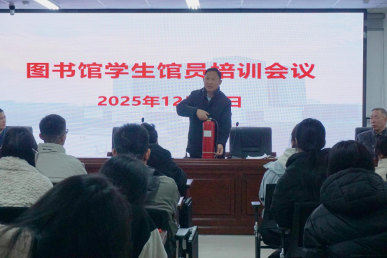为全面提升学生馆员综合素养,筑牢图书馆安全防线,提升文化服务效能,12月16日图书馆对2025级75名学生馆员开展专题培训。图书馆党支部书记陈国胜担任主讲人,副馆长霍磊参加了本次培训。