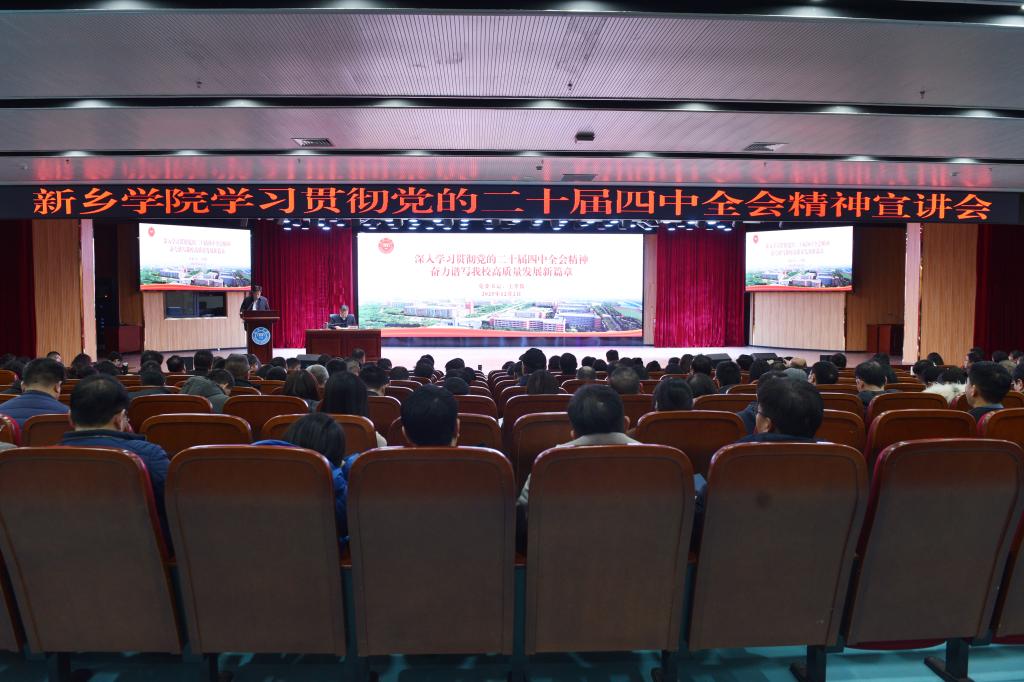 为深入学习宣传党的二十届四中全会精神,贯彻落实省委十一届十次全会各项部署要求,根据学校党委统一安排,12月2日下午,学校在图书馆南楼文化艺术中心召开学习贯彻党的二十届四中全会精神、省委十一届十次全会精神宣讲会,党委书记王孝俊作宣讲报告。全体在校校领导和中层干部参加会议。会议由党委副书记、校长李广慧主持。