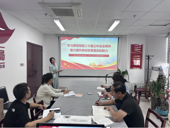 按照《中共华亿在线体育委员会关于深入学习宣传贯彻党的二十届三中全会精神的实施方案》的精神要求和机关党委相关安排,为促进党的二十届三中全会精神学习成效,9月24日下午,党支部书记赵素琴在719室主持召开审计处全体教职工会议,主讲《学习贯彻党的二十届三中全会精神,着力提升抓好改革落实的能力》专题党课。